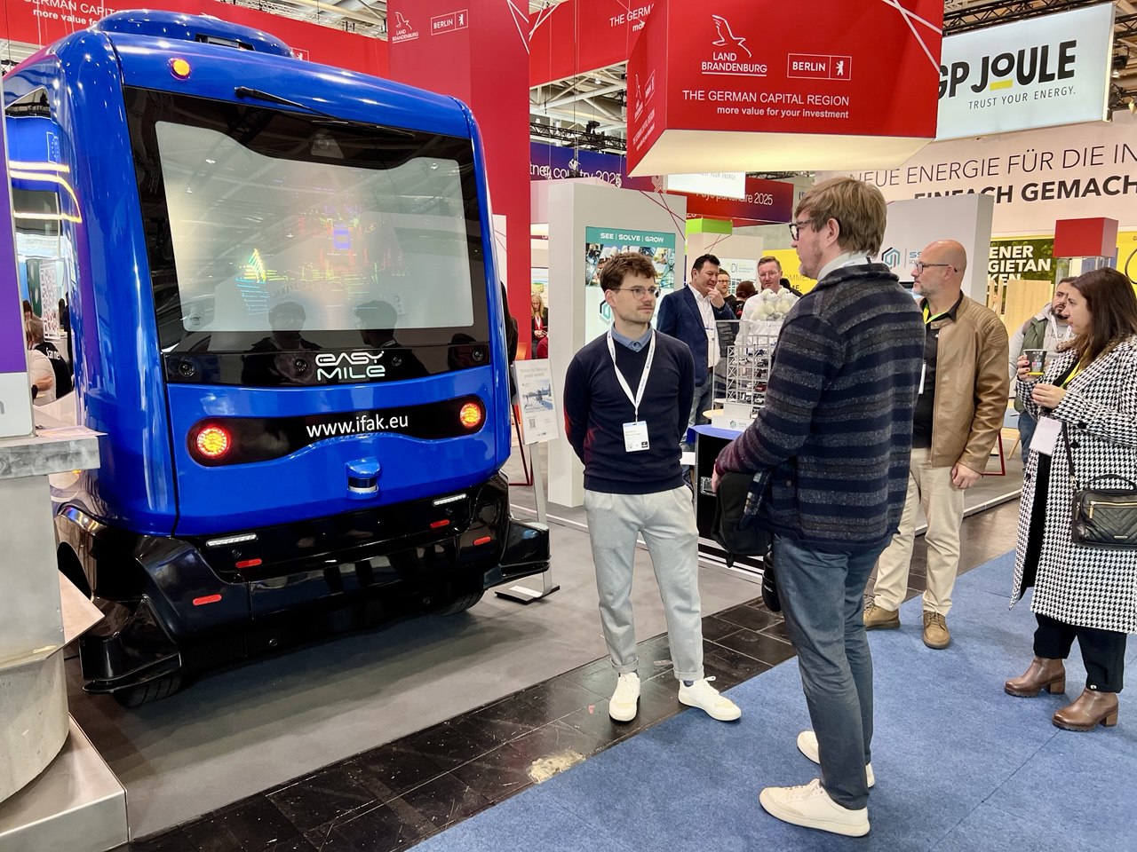 - Am Gemeinschaftsstand Berlin-Brandenburg (Halle 13, Stand D66) zeigten wir gemeinsam mit unserem Projektpartner PohlCon sowie DB Regio und Wiferion das Projekt ADVANTAGE. Die Lösung für induktives, vollautomatisches Laden autonomer Shuttlebusse und Logistikfahrzeuge stieß auf großes Interesse beim Fachpublikum. Besonderes Highlight war die Demonstration mit dem EasyMile EZ10 Shuttle, die zeigte, wie automatisiertes Fahren und induktives Laden zusammenwirken – ein zukunftssicheres Konzept für den urbanen Verkehr und industrielle Anwendungen.