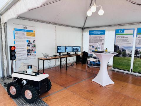Vom 5. bis 6. Oktober 2023 fand im Audimax der Hochschule Magdeburg-Stendal die Landeskonferenz „Autonomes und vernetztes Fahren“ statt. Eingeladen hatte das Ministerium für Infrastruktur und Digitales (MID) des Landes Sachsen-Anhalt zu dieser Veranstaltung. Das primäre Ziel der Veranstaltung war es, öffentliche und private Akteure mit Erfahrung und konzeptueller Kompetenz zum autonomen und vernetzten Fahren zusammenzubringen. Der Lehrstuhl für Logistik der Otto-von-Guericke Universität Magdeburg und das ifak zeigten an einem gemeinsam Stand V2X-Lösungen wie bspw. On-Board-Units und Road-Side-Units auf.